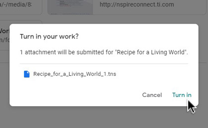 Student submits their work through the LMS, following prompts from the teacher (answering questions, using the TI-Nspire™ CX II Connect to take a screenshot, etc.).