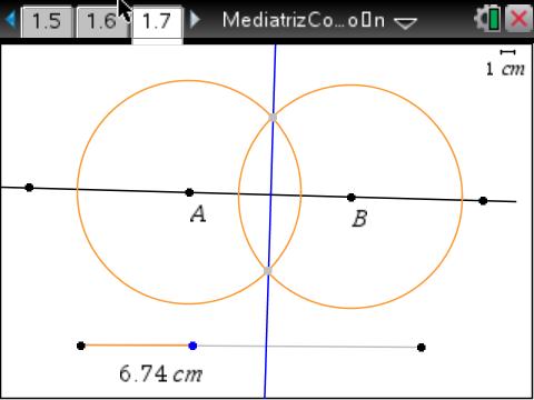 La primera actividad utiliza el Sistema TI-Nspire Navigator (http://education.ti.com/lar/nav). Empezamos con una definición informal de la mediatriz de un par de puntos (o del segmento entre ellos): que es el grupo/conjunto de puntos que están a la misma distancia de ambos puntos.
