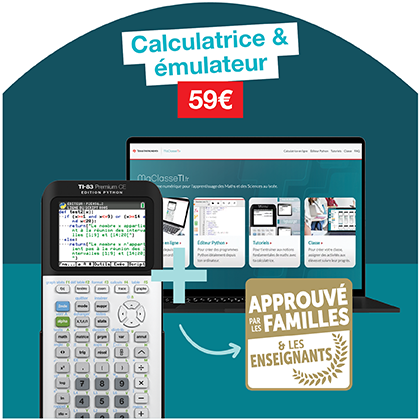 1 calculatrice graphique véritable "labo de poche", accès gratuit à MaClasseTI.fr et projection au top !