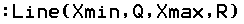 - Substituez Xmin et Xmax (les noms pas les valeurs !) dans l’équation pour x et stockez les résultats dans les deux variables Q et R représentant les ordonnées.