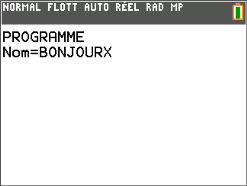 Sélectionnez le programme que vous avez commencé précédemment. Nous avions utilisé BONJOURX dans cette leçon ainsi notre écran affiche ce nom de programme.