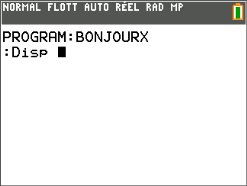 - Sélectionnez Disp. Le mot est collé dans votre programme à l’endroit où se trouve le curseur. La commande Disp affichera sur l’écran de calcul ce que l’on entrera en argument.