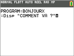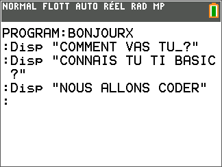 Ce programme va afficher un message simple sur l’écran de calcul de votre calculatrice.