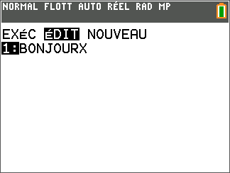 - Dans le menu EXÉC (exécuter), sélectionnez votre programme.