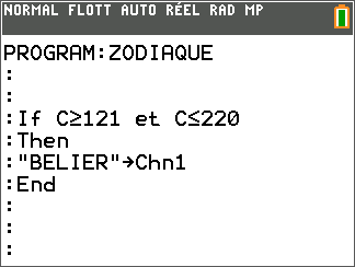 Déplacez le curseur à la fin de la première ligne du programme et appuyez sur [entrer]. Un second “deux-points” apparaît. C’est la seconde ligne du programme.