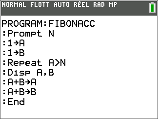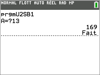 Indication : Le fait d’appuyer sur [entrer] après l’exécution d’un programme permet de relancer son exécution (car [entrer] permet de coller la dernière commande entrée dans l’écran de calcul).