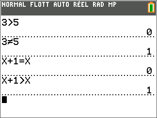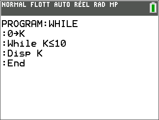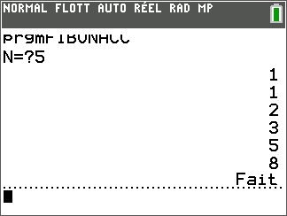 Indication : Le nombre de lignes de l’écran de calcul dépend du type de calculatrice utilisée. Par exemple une TI-84 Plus possède 8 lignes, la TI-83 Premium CE en a 10. L’affichage sur la dernière ligne induit un ‘return’ sur cette ligne ce qui provoque le défilement de l’écran d’une ligne vers le haut.