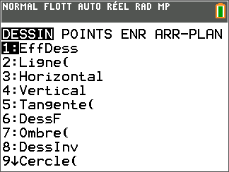 Indication : La fonctionnalité DrawF ne correspond pas à la représentation graphique d'une fonction en utilisant la méthode [f(x)] span et [graphe]. Une fonction qui est 'dessinée' ne peut pas être parcourue à l'aide de [trace], on ne peut effectuer de calculs dessus [calculs].La commande DrawF dessine uniquement les pixels que la fonction détermine. Un rafraichissement de l'écran effacera toute fonction dessinée. Elle ne sera redessinée que si la commande est validée de nouveau.