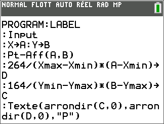 164/(Ymin-Ymax)*(B-Ymax) → C (équation de droite*)
