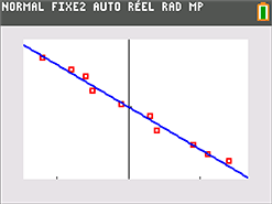 L’export des listes vers la calculatrice donne la représentation graphique ci-contre. L’utilisation de la touche [ trace ] permettra de retrouver les coordonnées de chaque point.