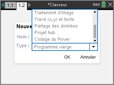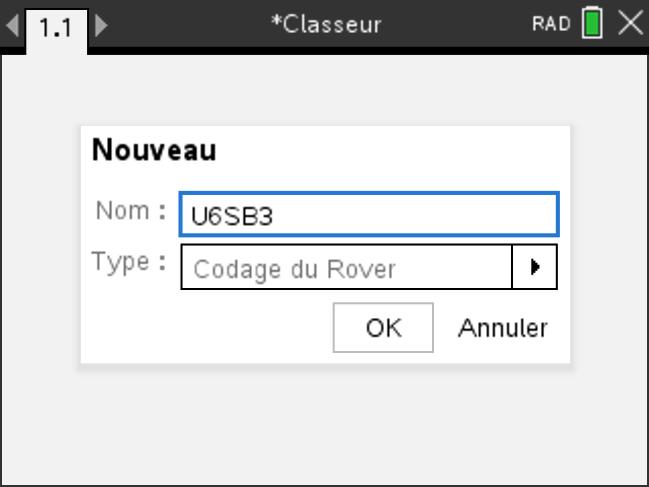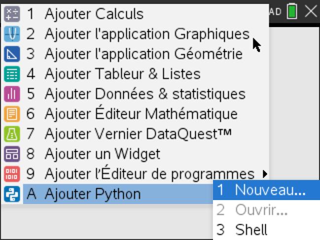 A partir de l’écran d’accueil de la calculatrice (ou du logiciel), créer un nouveau document.