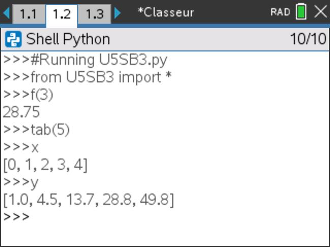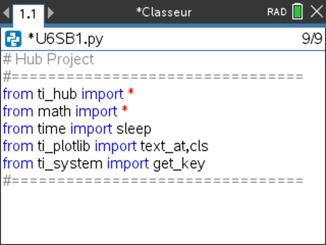 et choisir 4 Maths puis enfin le menu 1 from math import*