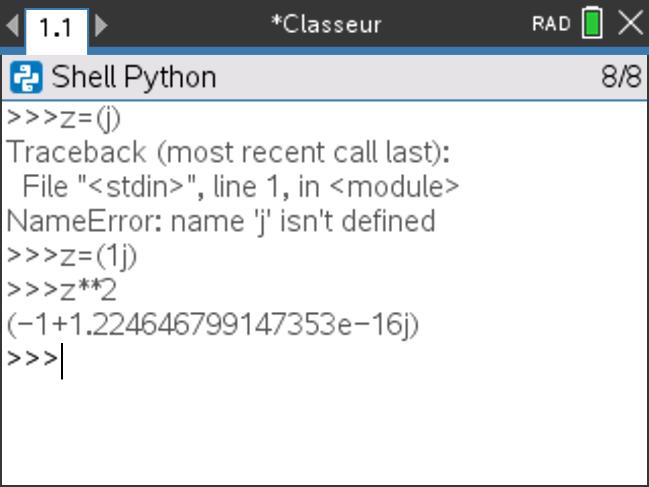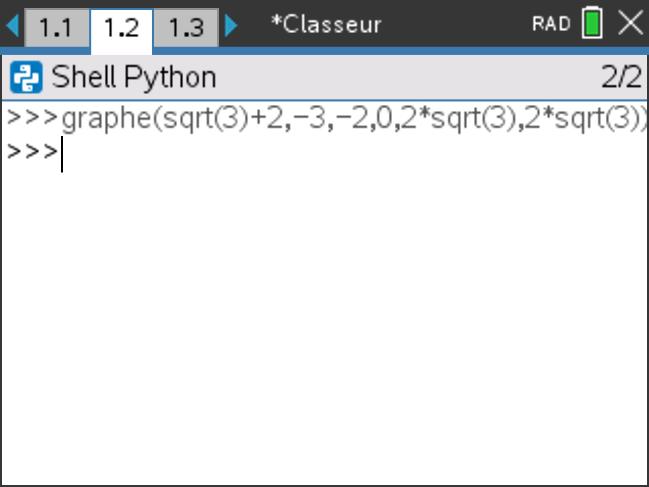 puis 4 Maths) et enfin 1 from maths import*. - L’ensemble des commandes utilisées peut être directement entré au clavier. La commande type qui permet de connaître la nature d’une variable est tapée à la main.