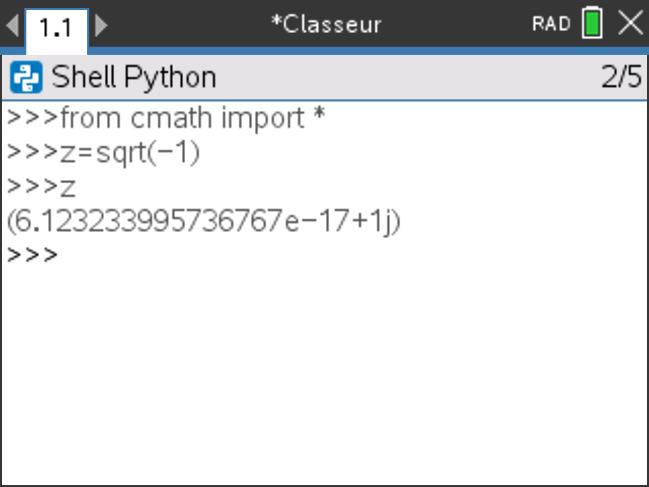 donne accès à 9 Plus de modules, puis 1 Mathématiques complexes. - Insérer les bibliothèques math et cmath