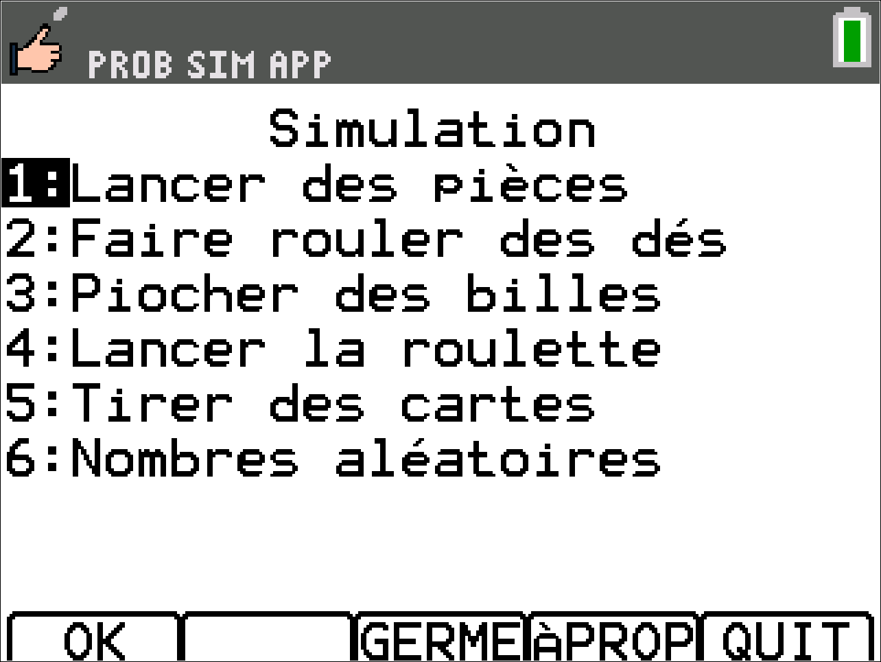 Explorez la théorie des probabilités grâce à l’animation interactive qui simule sur votre calculatrice le lancer de dés ou de pièces, et la génération de nombres aléatoires. Options disponibles :