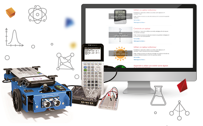 Pilotés directement par la calculatrice graphique des élèves, le boitier de programmation TI-Innovator Hub et le robot TI-Innvoator Rover vous permettent de créer facilement des activités interactives et innovantes avec vos élèves.