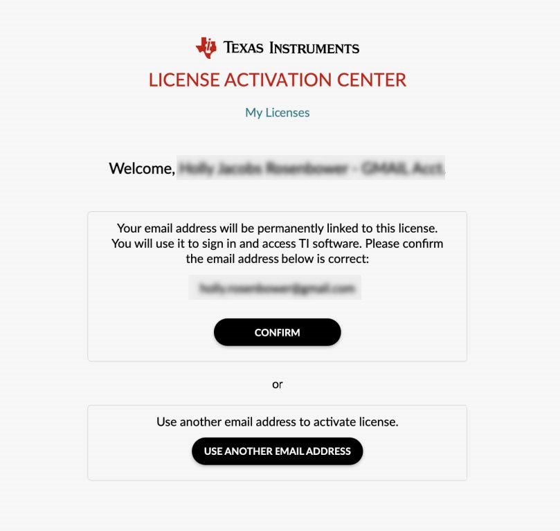 - Your email address will be permantley linked to this license. You will use it to sign in and access TI software. Please Conform the email address below is correct: |