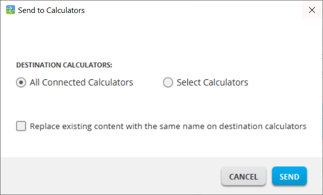 : seleccione si desea enviar el archivo a todas las calculadoras conectadas o solo a las que haya seleccionado (en una lista de selección). |