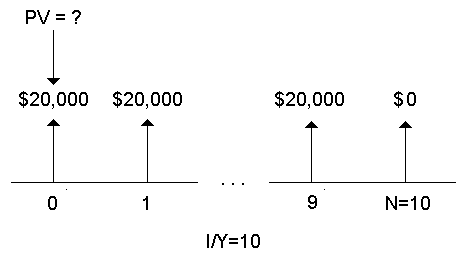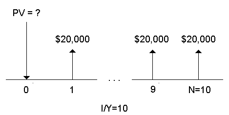 Furros 公司购买一台新设备,预计使用十年,每年可节约费用$20,000。假设 年折现率为10%,普通年金和预付年金的节约费用的现值为多少?
