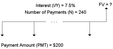在一项退休计划中,每月月初您投入$200。如果年利率为7.5 %,月复利计 息,期初付款,20 年后此账户的结余为多少?