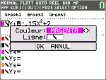 | • | Avec le curseur positionné sur une fonction dans [Y=], appuyez sur ‘ ‘ pour revenir à la couleur et au style de trait par défaut associés. |