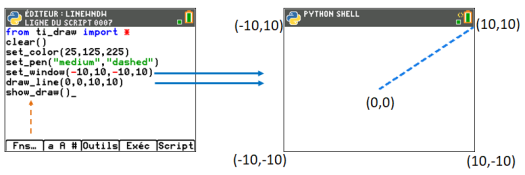 Remarque : Lors de l'importation du module ti_plotlib, l'argument correspondant au style de la méthode pen() est "continu", "pointillés" ou "tirets". |