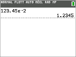 | • | â signifie « x10 » et la calculatrice interprète le nombre complet comme (123,45 x 10-2), comme s'il était saisi avec des parenthèses. |