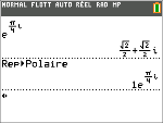 Réglez z sur le mode angulaire REAL, POLAR ou RADIAN pour travailler avec les fonctions exponentielles complexes utilisant J. Avec des valeurs d'angles en radians sélectionnées, multiples de p/12, la TI-83 Premium CE prend en charge les résultats exacts pour les valeurs radiales.