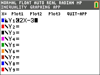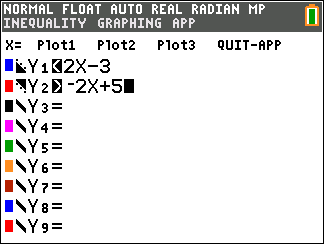 The cursor will blink over the = sign in the enhanced inequality Y=editor.