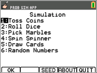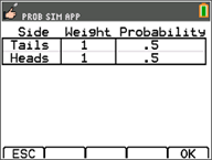 Currently, the coins are equally weighted. Press OK when the settings and the weight for the simulation are appropriate. Next, press TOSS . |