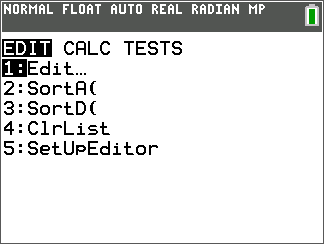 | 2. | Select 1: Edit in the EDIT submenu, then [enter]. |