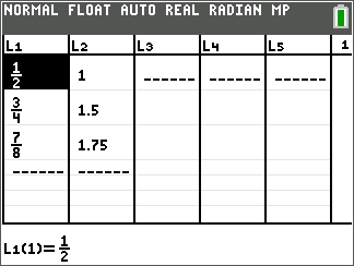 Note: Once in the list editor, use the arrow keys to enter the data in the lists. L1 – L6 are built-in list names. Custom list names can be created by scrolling to a blank list name and pressing [enter].