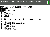 | 1. | Appuyez sur ½ pour afficher le menu VAR. Placez le curseur sur 7:Chaîne. |