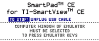 Lancez l'application SmartPad™ CE sur votre TI-84 Plus CE-T Python Edition. Appuyez sur [apps] et sélectionnez SmartPad™ CE dans le menu d'applications. Lisez les informations sur l'écran d'accueil. |