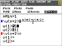 O modo de representação gráfica SEQUÊNCIA representa graficamente sequências. Estão disponíveis três sucessões: u, v e w, com uma opção das variáveis independentes de n, n+1 e n+2.