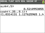sinh(, cosh( och tanh( är de hyperboliska funktionerna. Var och en är giltig för reella tal, uttryck och listor.