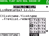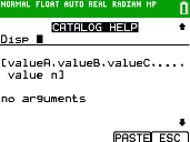 Katalogen (y N) visas i alfabetisk ordning. När du visar katalogen aktiveras alpha-låset. Tryck på den första bokstaven i funktionsnamnet för att hoppa över funktionsnamn som alfabetiskt kommer före det namnet. Använd } och/eller † för att flytta markören till funktionen. |