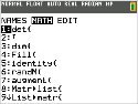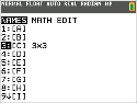 | 2. | Tryck på y ¾ och använd MATH-undermenyn för att välja ett matriskommando. |