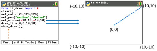 Tem de estar incluído para exibir o desenho. Prima [clear] para limpar o desenho e voltar ao prompt do Shell. Para ver o histórico do Shell, prima [2nd] } e [2nd] †. |