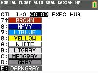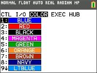 GraphColor( designates the color of the graph to be drawn. function# is the number of the Y= function name in the current graphing mode. color# is a number from 10 to 24 that corresponds to the graph color, as shown in the table below: