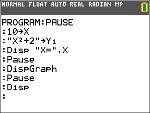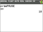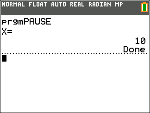 | • | Pause without an argument temporarily pauses the program. If the DispGraph or Disp instruction has been executed, the appropriate screen is displayed. Press Í to resume execution. |