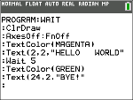 Note: When using TI Connect CE Program Editor, Pause must have a space after the command even if no argument is entered.
