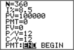 Note: In the example above, the values are stored to the TVM variables in the TVM Solver. The payment (tvm_Pmt) is computed on the home screen using the values in the TVM Solver. Next, the interest rate is changed to 9.5 to illustrate the effect on the payment amount.
