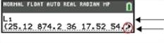 | • | Si una expresión supera la longitud de una línea, puede quedar fuera de la pantalla (tanto de la pantalla principal como de la pantalla del editor Y=). Pulse ~ para ver la expresión completa. |