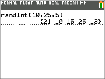 Para generar un conjunto de cinco números enteros aleatorios entre 10 y 25 (ambos inclusive):