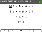 Appuyez sur la touche associée au caractère alpha que vous souhaitez accentuer, par exemple, [A] (au-dessus de »). Le caractère accentué est affiché sur la ligne de saisie. |