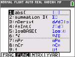 Funciones seleccionadas en los menús MATH MATH (MATEMÁT MATEMÁT) y MATH NUM (MATEMÁT NÚM) con el mismo aspecto que en los libros de texto, cuando el modo activado es MathPrint™. Funciones, incluidas valor absoluto, diferenciación numérica, integración numérica, sumatorio, logaritmo en base n, raíz cuadrada, variaciones, combinaciones y factoriales. |
