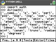 Sélection de fonctions natives (Built-in), de mots-clés et de contenus de modules TI-Python