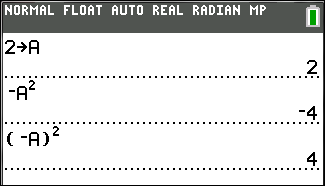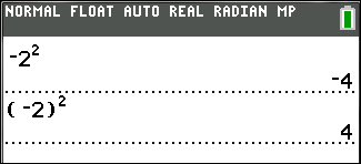 Example: MX2, evaluates to a negative number (or 0). Use parentheses to square a negative number.