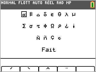 Accent marks appear in the menus at the bottom of the screen.